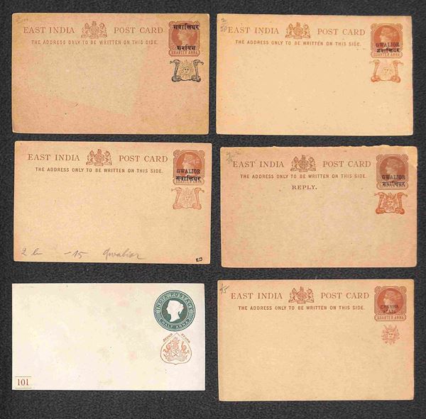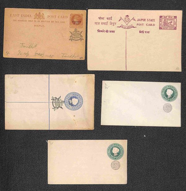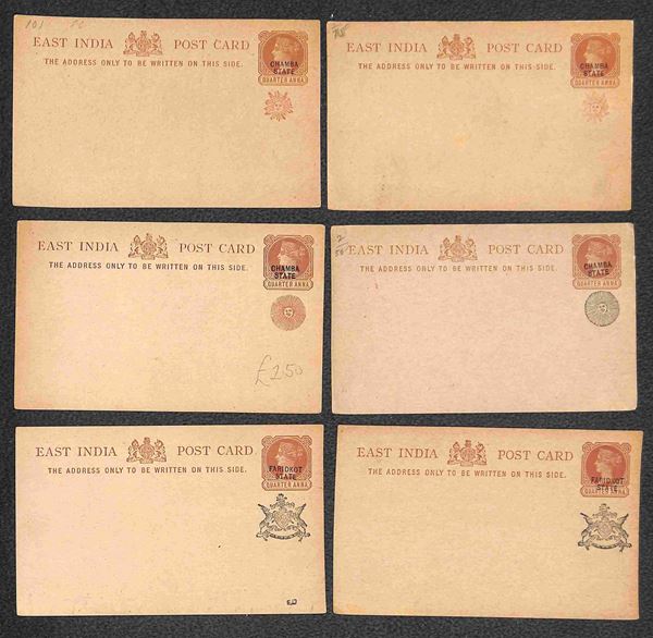 East India (Gwalior + Jaipur + Jeend + Chamba + Faridkot) - sedici cartoline e buste postali nuove - da esaminare