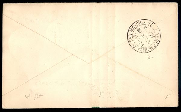 Fiera Campionaria (111 + 4 Aerea) - 2 valori su aerogramma FDC (8 marzo 1932) da Tripoli a San Marino (tassato in arrivo) nel giorno d'emissione