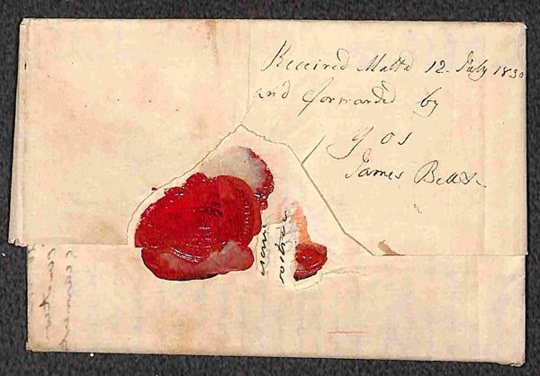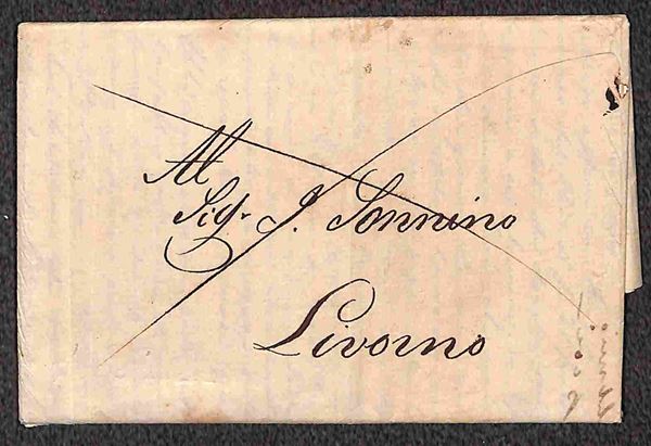 Forwarded - Raccomandata da Alessandria a Livorno del 23.6.1830 "Receveid Malta 12 July 1830 and Forwarded by Yos James B..." manoscritto al retro