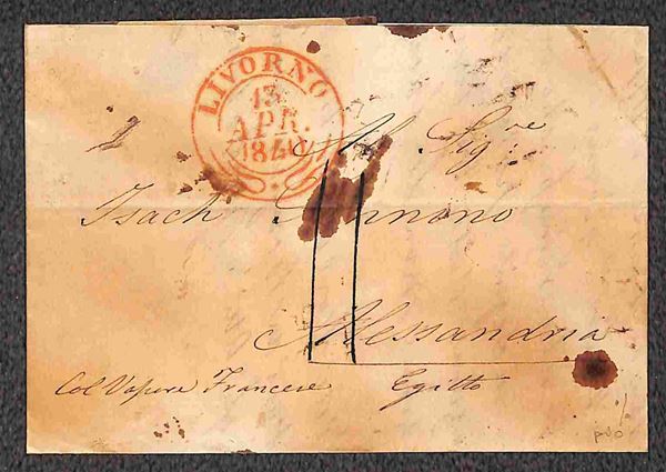 Fumigate - Due lettere per Alessandria d'Egitto da Trieste (1835) e Livorno (1840)