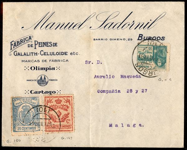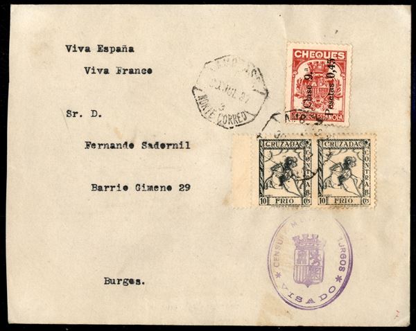 Guerra di Spagna - 1937 - Due buste da Burgos con francobolli per la Crociata contro il freddo tra cui una coppia non dentellata + complementari (5 - 8) del 30.07 e 8.09