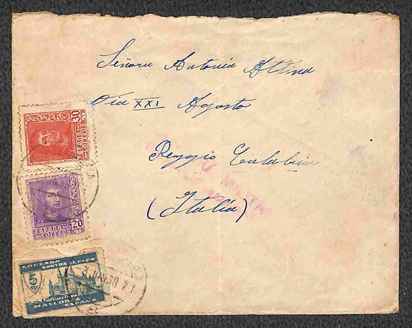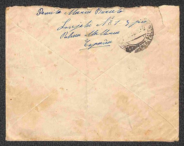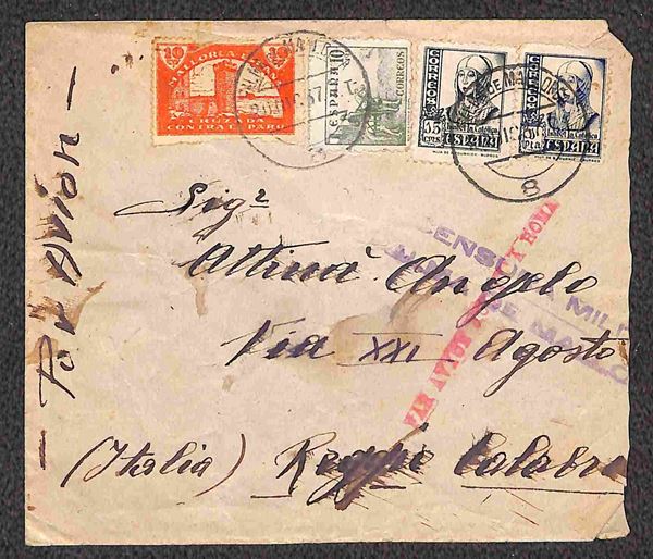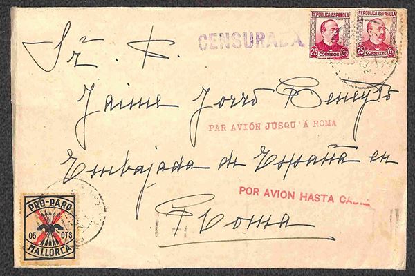 Guerra di Spagna - Tre aerogrammi da Mallorca con francobolli sovrapprezzo Pro Paro + complementari per l'Italia del 1937/1938 - censure