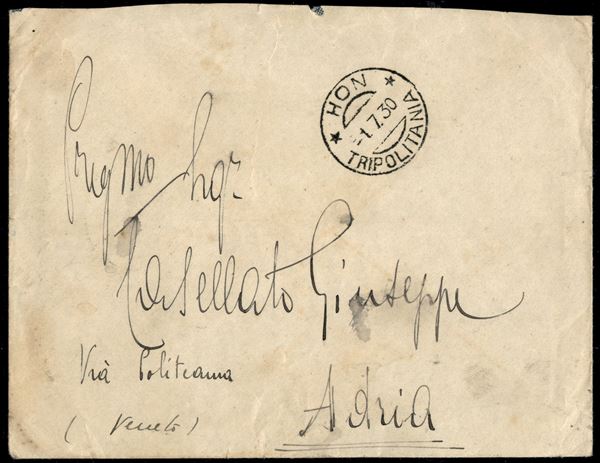 Hon Tripolitania 1.7.30 - coppia del 25 cent (49) al retro di busta per Adria