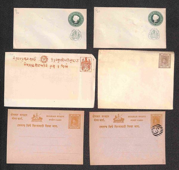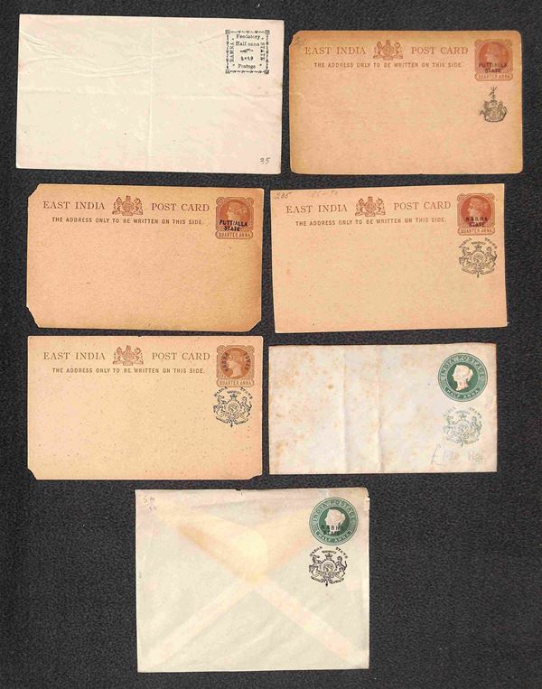 Jhind + Holkar + Bamra + Puttialla + Nabha - tredici cartoline e buste postali nuove - da esaminare