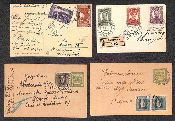 K.U.K. Feldpost + Bosnia/Erzegovina - 16 cartoline postali (2 nuove) + 2 cartoline + 2 raccomandate con affrancature del periodo - da esaminare