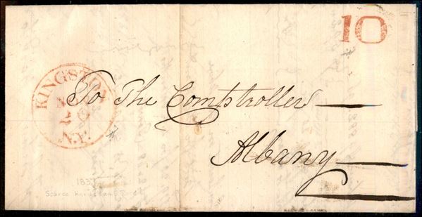 Kingston N.Y. + 10 (in rosso) - letterina per Albany del 20.11.1837 - V. Alfani