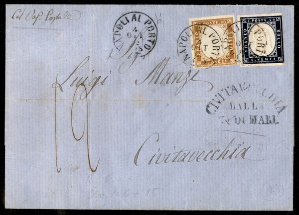 Napoli Porto (P.ti 11) - lettera per Civitavecchia (dalla Via di Mare) del 4.10.62 affrancata per 30 cent (14D + 15E - Sardegna) tassata in arrivo