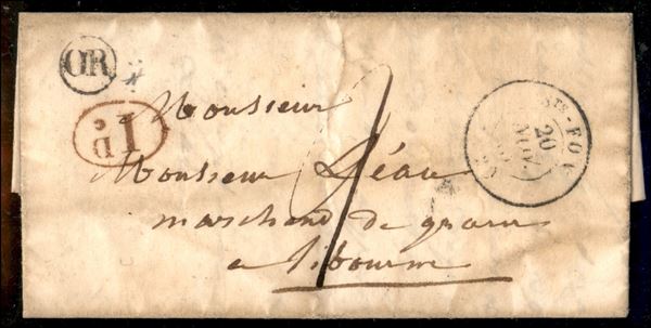 Or (nero) + ID (rosso) - letterina per Libourne del 20.11.1845 - V. Alfani