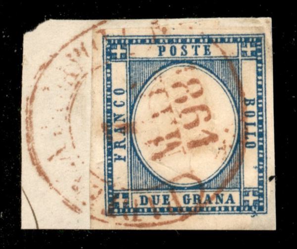 Partenza da Napoli (rosso - P.ti 10) - 2 grana (20) usato su frammento il 7.3.61 (anno capovolto)