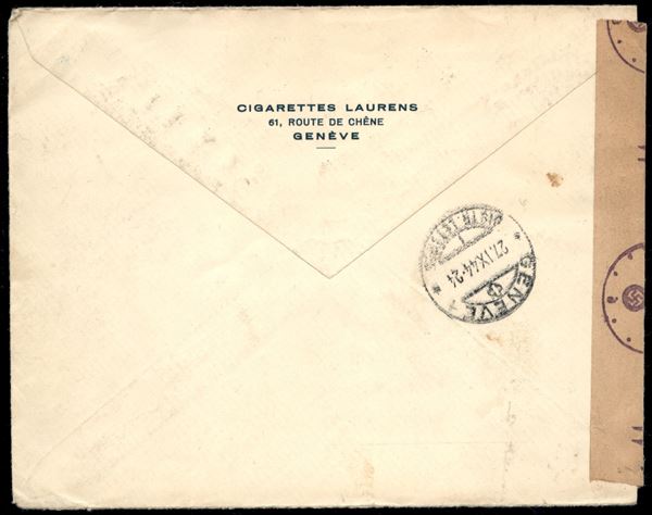 Posta Aerea (435/437) - serie completa su raccomandata FDC da Ginevra a Bruxelles del 1.9.44 - censure