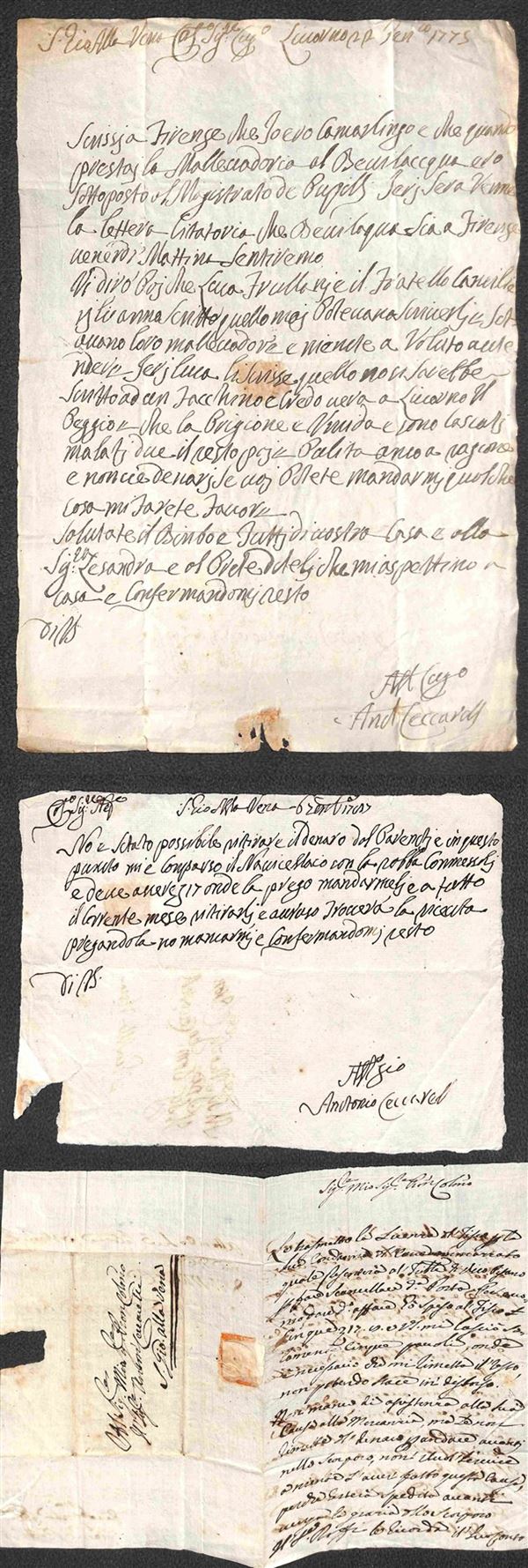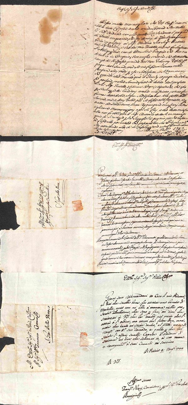 PREFILATELICHE - 1731/1792 - Insieme di 18 lettere d'archivio (carteggio Ceccarelli) in prevalenza da Firenze a San Giovanni alla Vena - notati diversi sigilli chiudilettera a secco