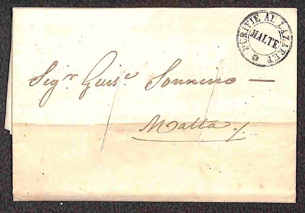 Purifie au Lazaret Malte - lettera da Tunisi del 24.10.1844 con tagli di disinfezione