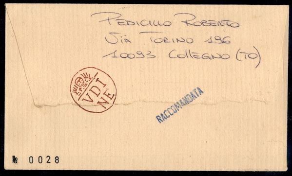 Raccomandata affrancata con 2,80 € (2739) con dentellatura fortemente spostata + complementari da Collegno per città del 21.2.12 - Biondi