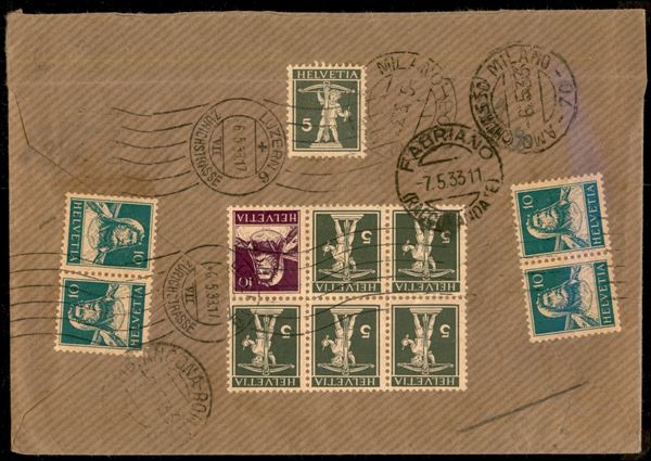 Raccomandata da Lucerna del 6.5.33 con affrancatura multipla al retro (H Blatt 29 + 201 + 203 coppia + 203 coppia tete beche)