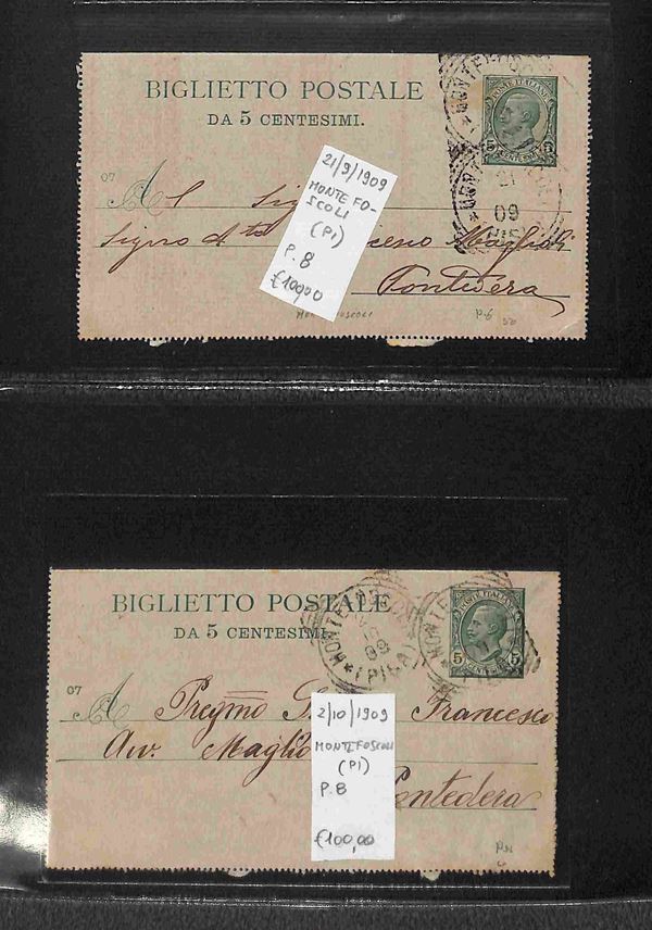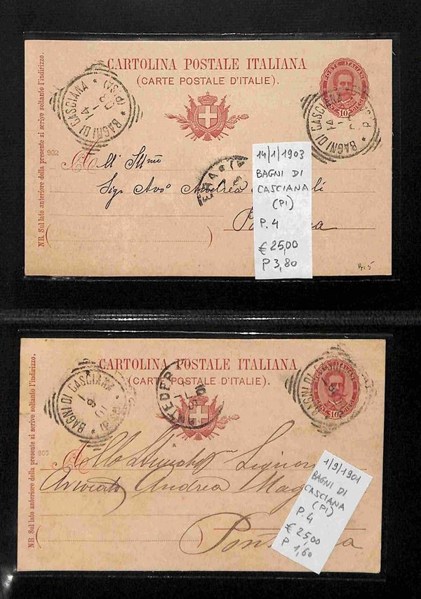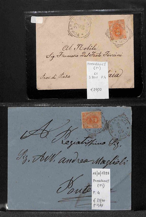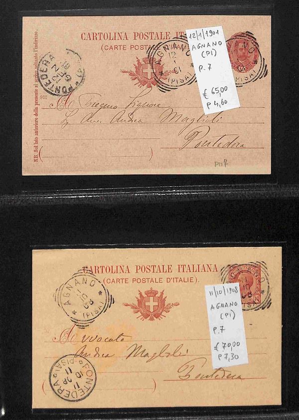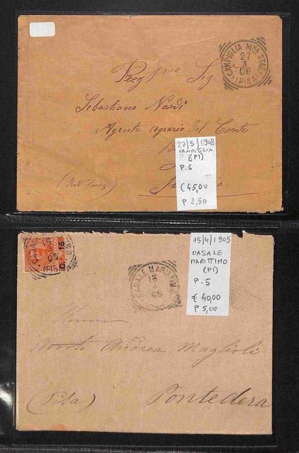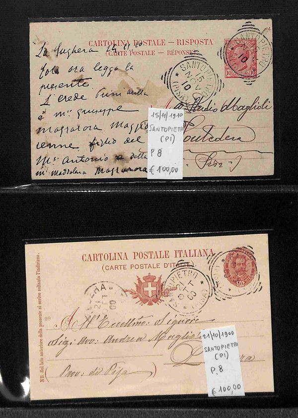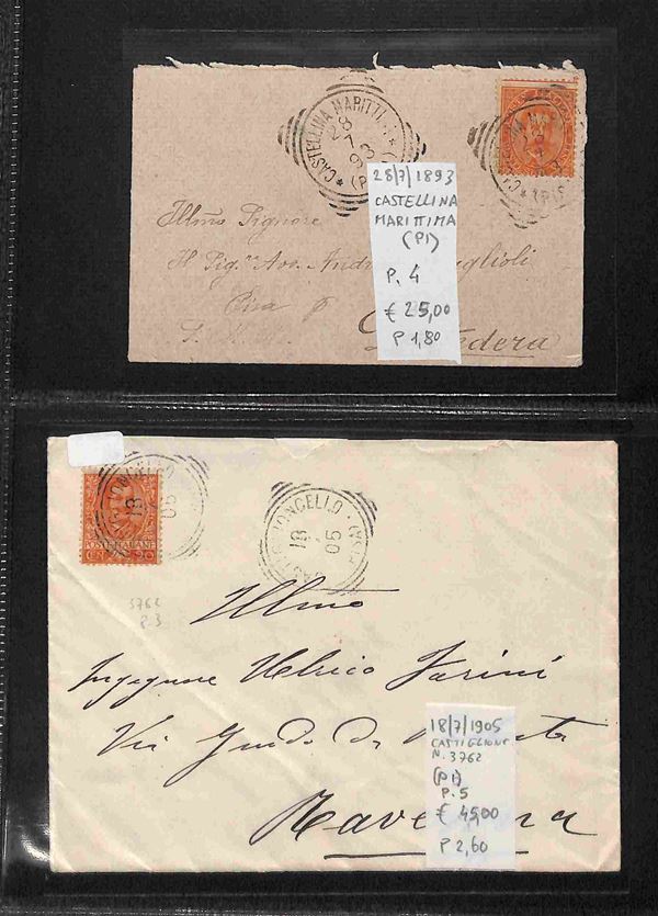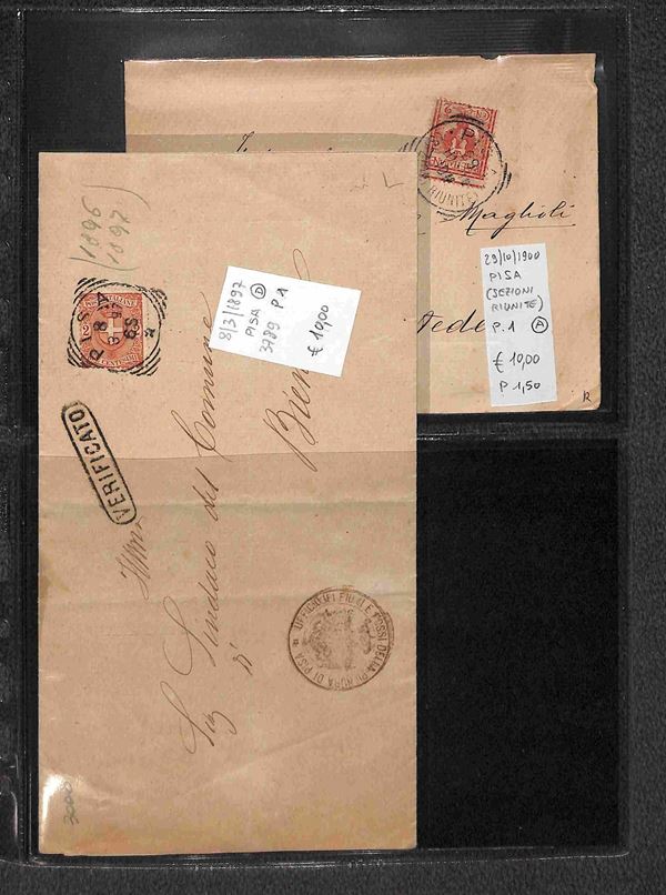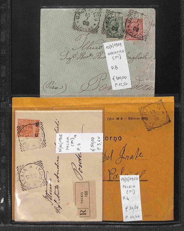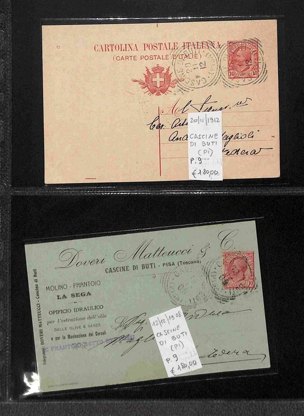 REGNO - 1886/1912 - Tondo Riquadrati - Collezione di oltre 280 buste e cartoline degli annulli della provincia toscana di Pisa in due album - merita esame