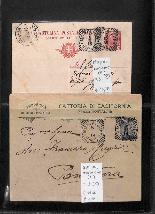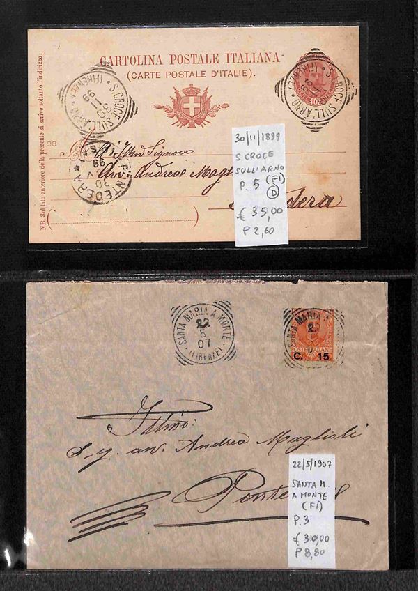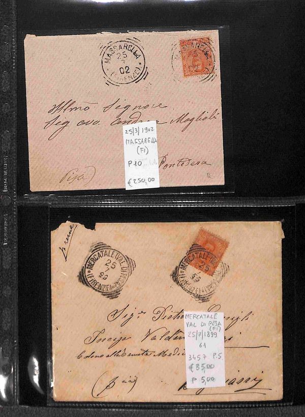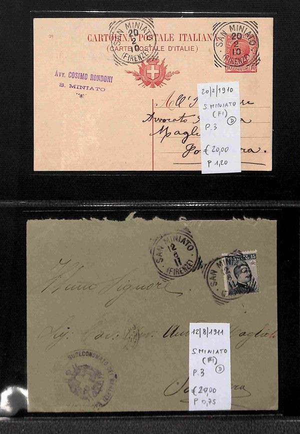 REGNO - 1893/1914 - Tondo Riquadrati - Collezione di oltre 180 buste e cartoline degli annulli della provincia toscana di Firenze in un album - merita esame
