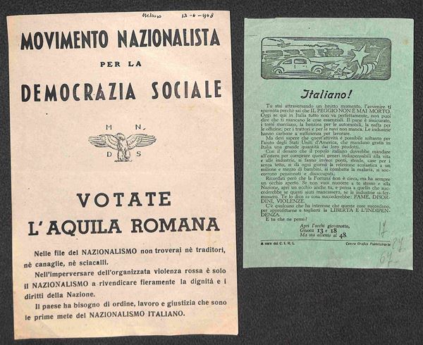 REPUBBLICA - 1948 - Elezioni Nazionali - lotto di 8 volantini di propaganda elettorale