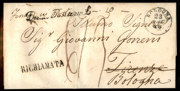 Richiamata + Diritto Toscano L. 30 - letterina da Bologna a Firenze del 23.5.48 resa a Bologna - tassata