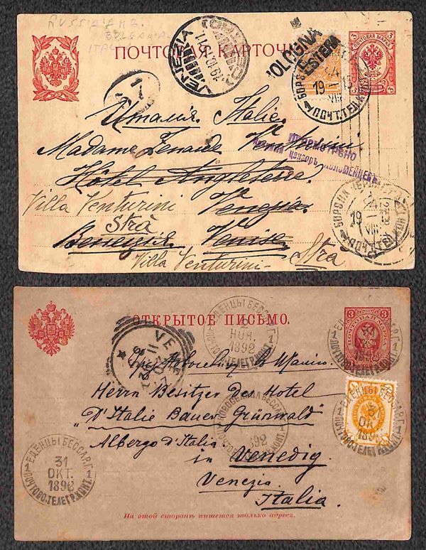 Russia/Finlandia - 1881/1915 - Sei cartoline postali (una nuova) + 2 buste postali del periodo (due con affrancature complementari) - da esaminare