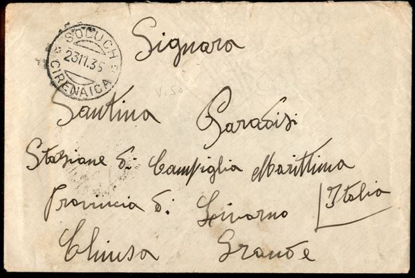 Soluch Cirenaica 23.11.35 - Coppia del 50 cent (51) al retro di aerogramma per Livorno