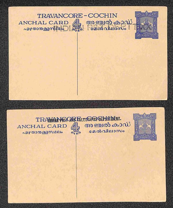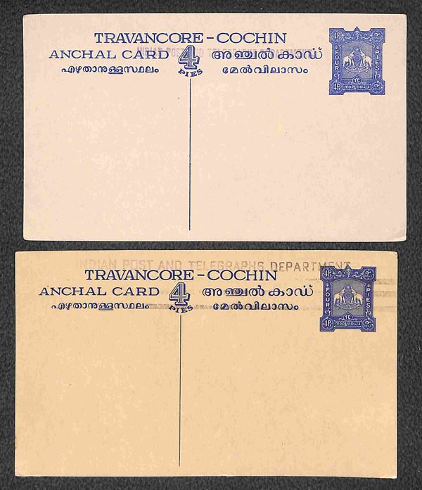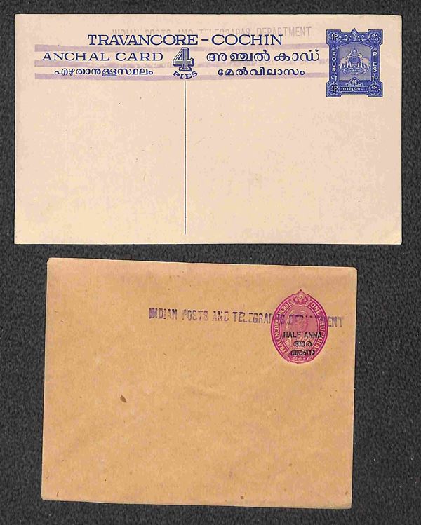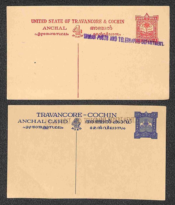 Travancore - sette cartoline postali + una busta postale nuove