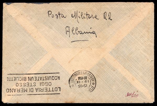 Ufficio Postale Militare 99 - coppia del 2 qind (2 varietà) con soprastampa smossa spostata a sinistra + 15 qind (21) - aerogramma per Firenze del 17.9.39 tassato e detassato
