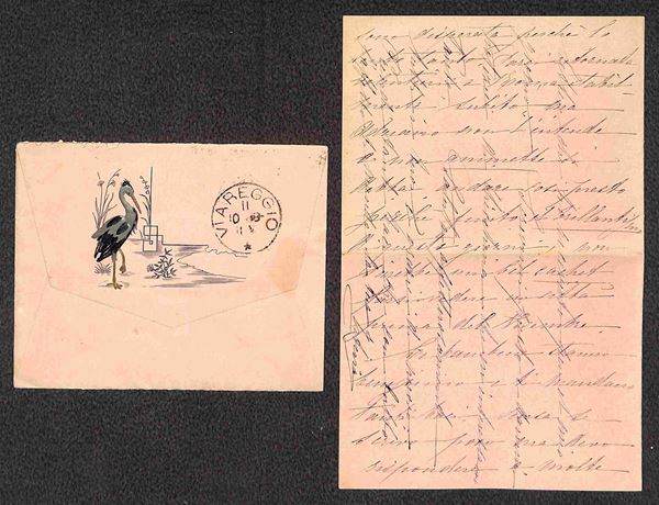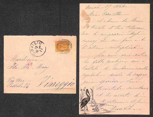 Valentina - Bustina da Orvieto del 10.10.1888 con decorazione a rilievo (al retro) ripetuta sul foglio interno (del 17.10.88)