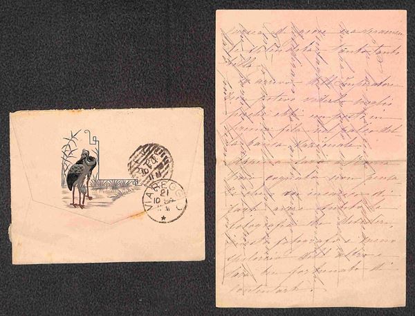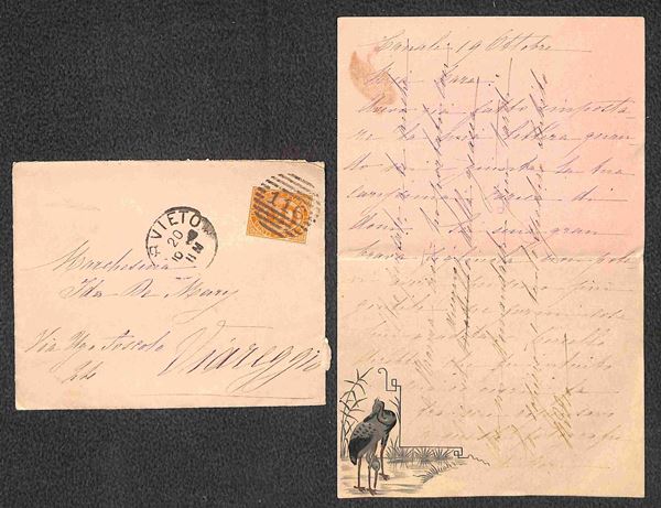 Valentina - Bustina da Orvieto del 20.10.1888 con decorazione a rilievo (al retro) ripetuta sul foglio interno