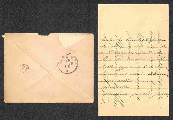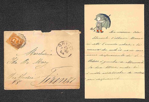 Valentina - Bustina da Orvieto del 28.7.1889 con foglio interno decorato a rilievo