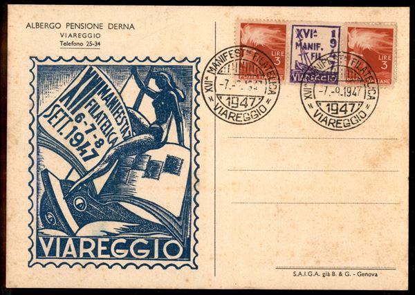 Viareggio/XVI Manifest.ne Filatelica - due cartoline con affrancatura speciale