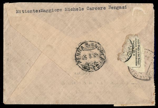 Virgilio - 15 cent (77) singolo + quartina + 30 cent (80) + 75 cent (82) - raccomandata da Bengasi a Teramo del 21.3.31 (1.850)