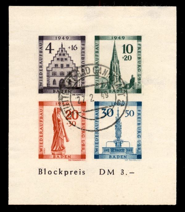 ZONA FRANCESE/BADEN - 1949 - Foglietto Friburgo (Block 1 B ) - non dentellato - usato