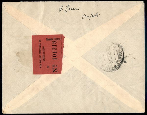1 lira Garibaldi (3 - Aerea) + 1,25 lire Espresso (12 - Libia) - aerogramma da Tripoli a Roma del 8.10.32
