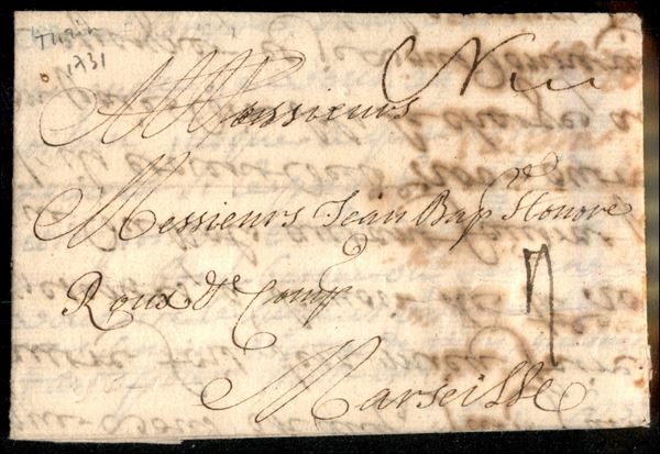 1731 - Lettera da Nizza a Marsiglia con manoscritto Nice e segno di tassa 4 - rara