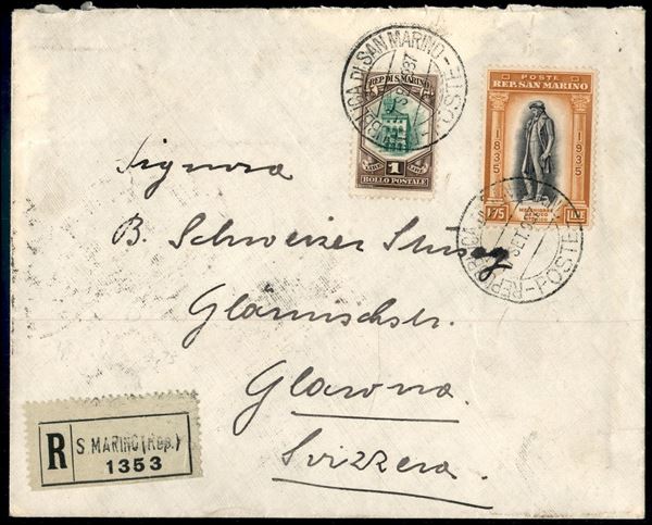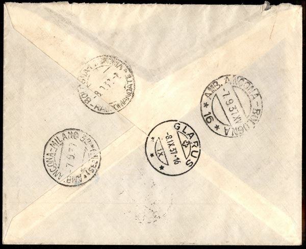1,75 lire Delfico (204) + complementare (149) - raccomandata per la Svizzera del 7.9.37