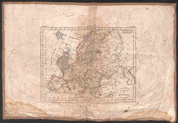 1820 - Carta d'Europa - Milano - Battelli e Fanfani - 40 x 27 - montata su tela - da esaminare