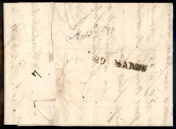 1824 - Lettera da Marsiglia per Livorno con bollo lineare Nizza di Mare e bollo tondo in rosso Corrispondenza Estera da Genova