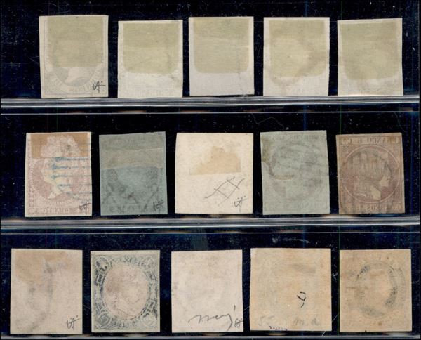 1850/1865 - Prime Emissioni - Due nuovi + tredici usati (uno bordo di foglio su frammento) - ottima qualità - sei firmati Alfani
