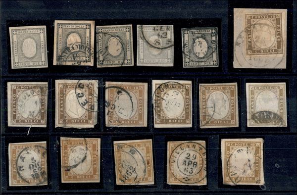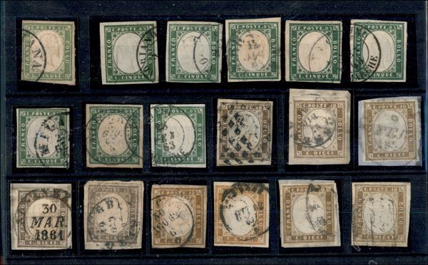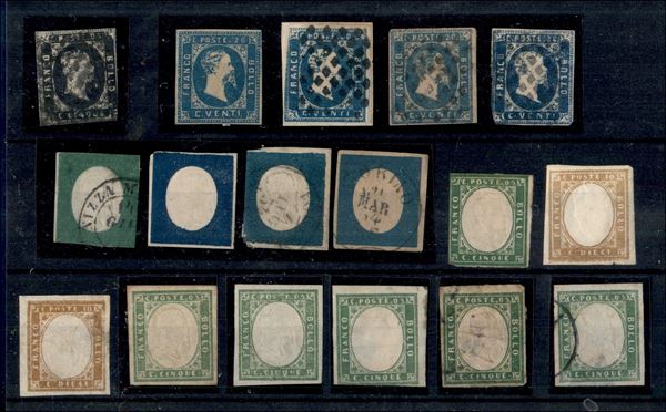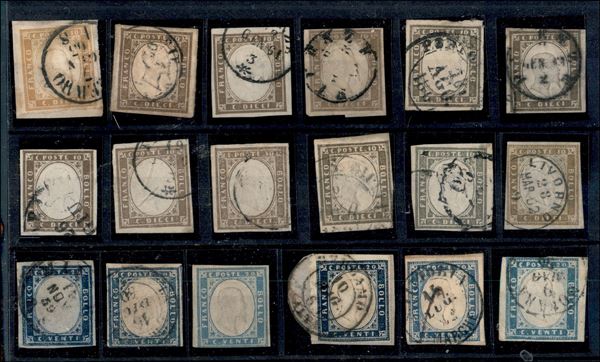 1851/1861 - Insieme di 105 esemplari nuovi e usati del periodo con un interessante parte riguardante la IV emissione con molte tinte differenti da studiare - montato su 6 cartoncini