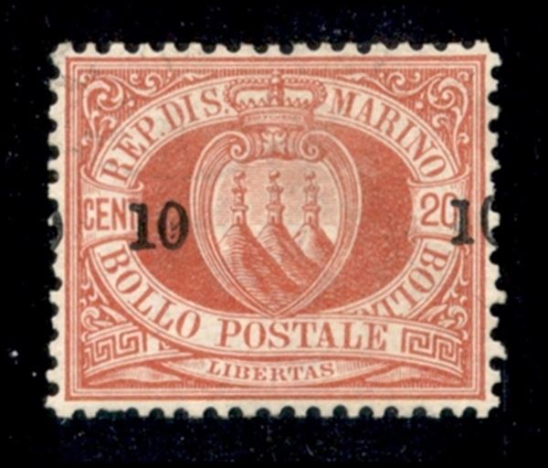 1892 - 10 cent su 20 (11) - soprastampa spostata (0 a cavallo) - gomma integra - ottimamente centrato - cert. AG