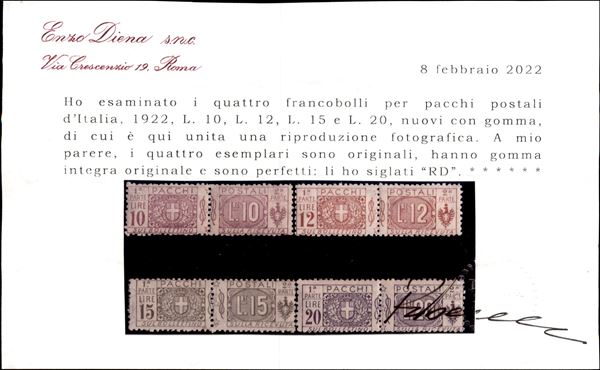 1914/1922 - Pacchi Postali (7/19) - serie completa - gomma integra - cert. Diena