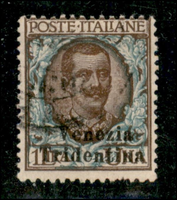 1918 - 1 lira (27) usato - soprastampa in basso (Tridentina sul valore) - non catalogato