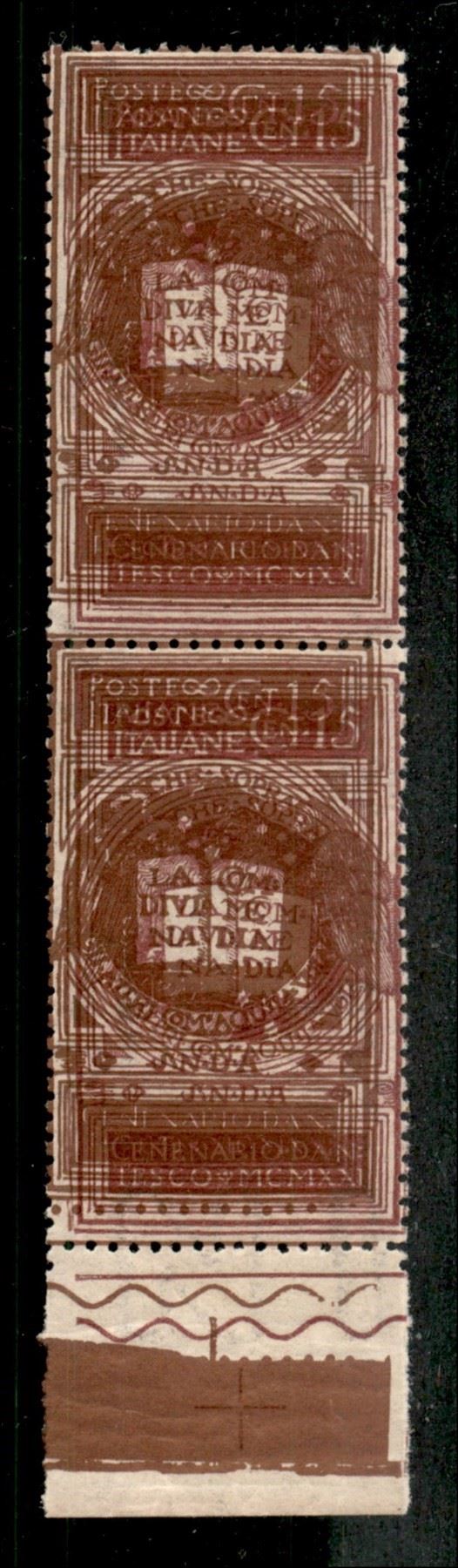 1921 - Dante Alighieri coppia verticale 15 cent bordo foglio in basso - varietà doppia stampa (116c) - gomma integra