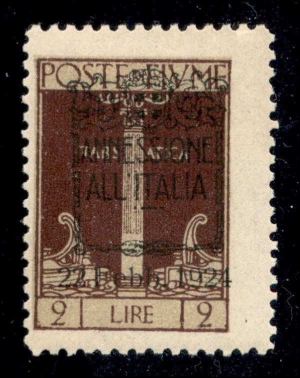 1924 - 2 lire Annessione (223 - bruno carminio) - gomma originale (550)