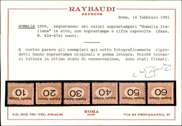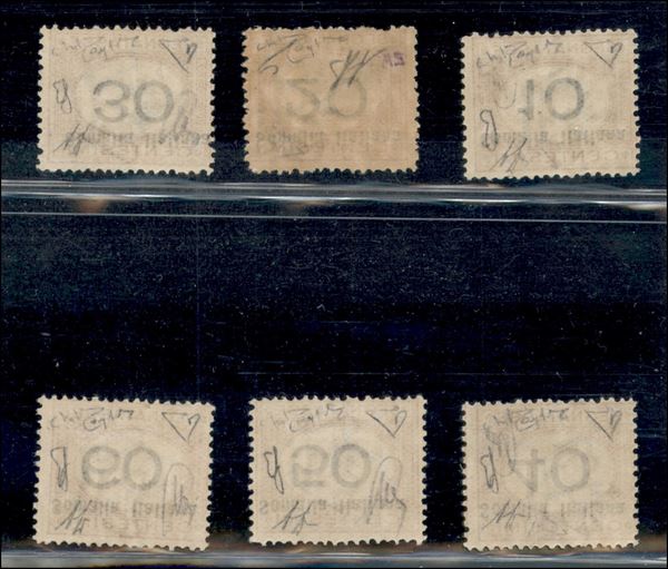 1926 - Segnatasse (42a/47a) - soprastampe e cifre capovolte - serie completa - gomma integra - Diena + Cert. Raybaudi + Cert. AG (4800)