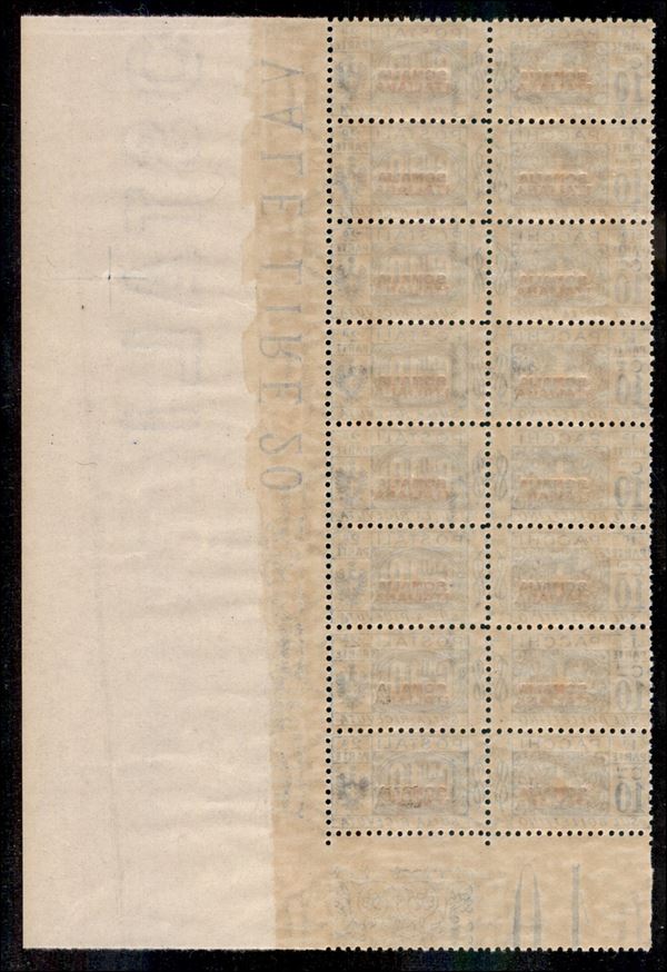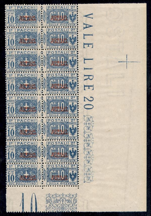 1926/1931 - Blocco di otto del 10 cent (44) Non Emesso - angolo di foglio - gomma integra
