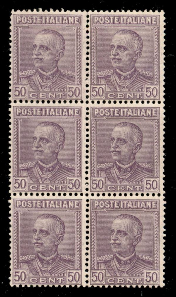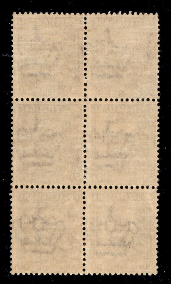 1928 - 50 cent Parmeggiani (Sassone 225aa - violetto) - blocco verticale di 6 - nuovo con gomma integra