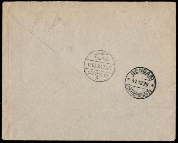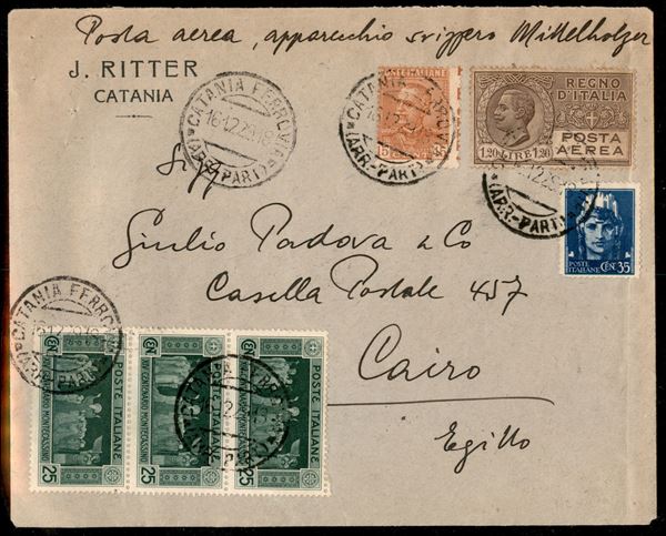 1929 (16 dicembre) Catania Cairo (Longhi 2035) - aerogramma del primo volo contenuto nel dispaccio del Mittelholzer - 37 volati