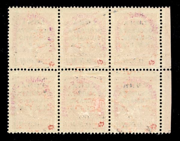 1942 - Blocco di sei del 1,50 din "Pro Opera Nazionale Maternità e Infanzia" in violetto (41) - bordo foglio - gomma integra
