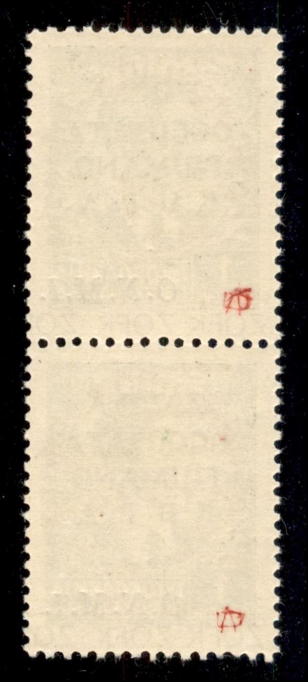 1942 - Colori Cambiati - 1 din (40b) - coppia verticale con diciture in basso - gomma integra (2.300+)